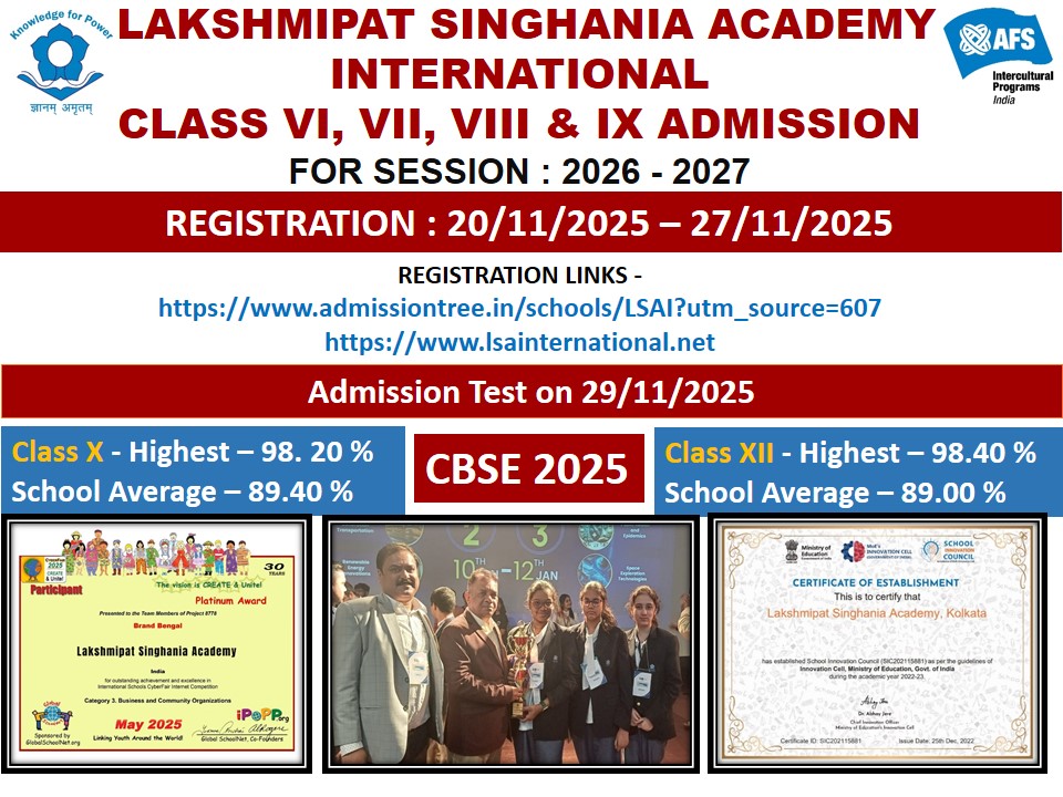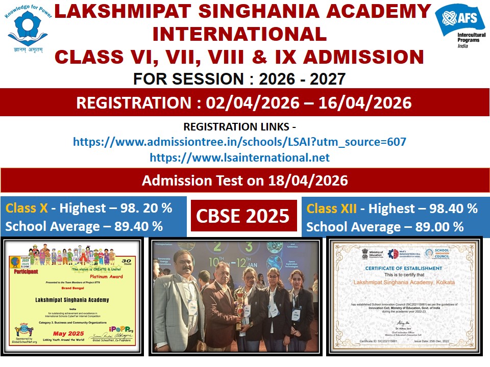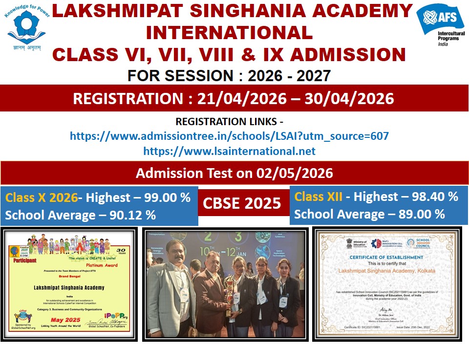 At Lakshmipat Singhania Academy International, we aim to create a world of inspired learning, wherein every experience – academic as well as co-curricular – is infused with joy and wonder. It is not just learning but a love for learning, which what we want to encourage our learners with. Our students are encouraged to become positive change makers of the future.