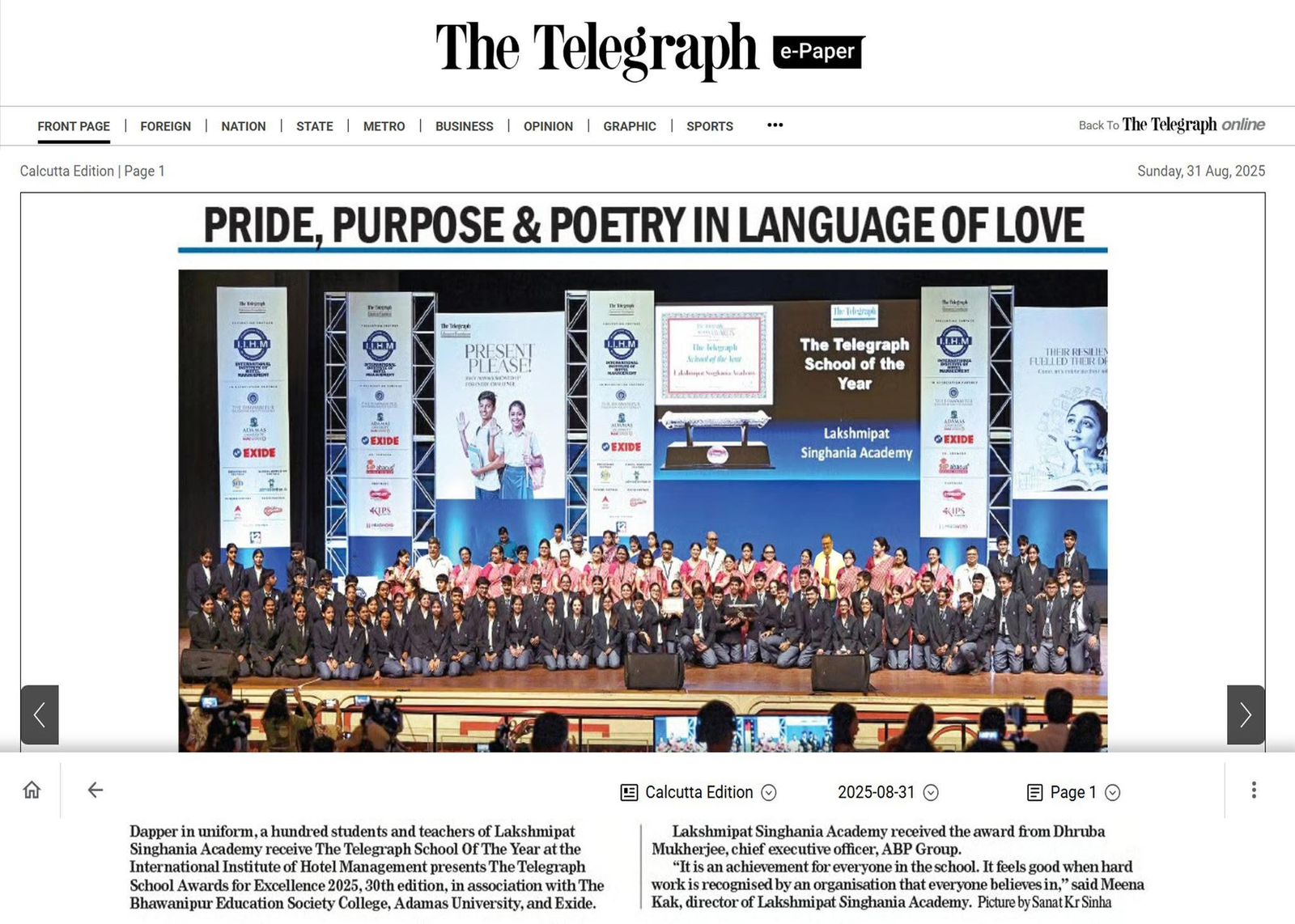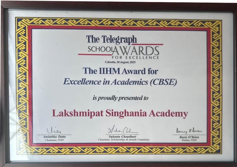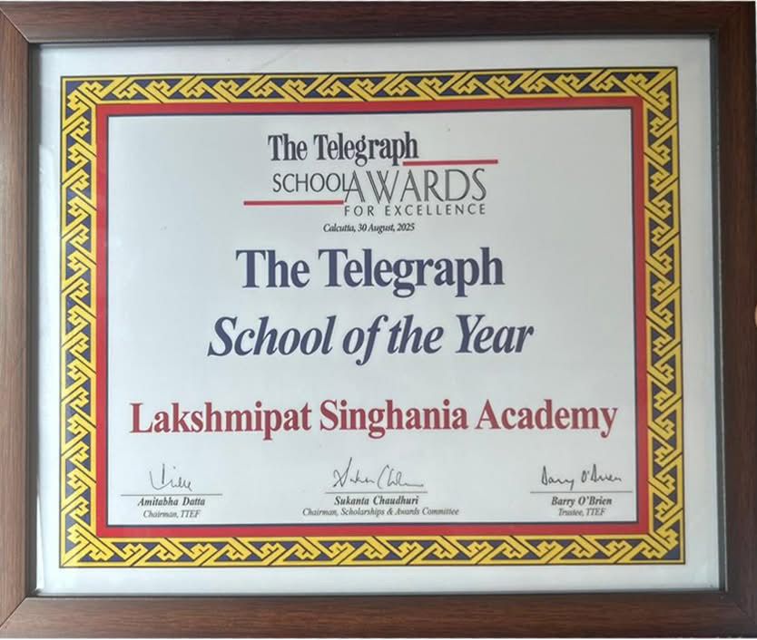 Highlight: We, the sister school of LSA are proud to share that Lakshmipat Singhania Academy has been honoured with the prestigious title of School of the Year at The Telegraph School Awards for Excellence 2025. The Academy also received the Excellence in Academics Award, recognizing its consistent dedication to scholastic brilliance. These achievements reflect the school’s commitment to holistic growth, resilience, and the collective efforts of its students and teachers.
